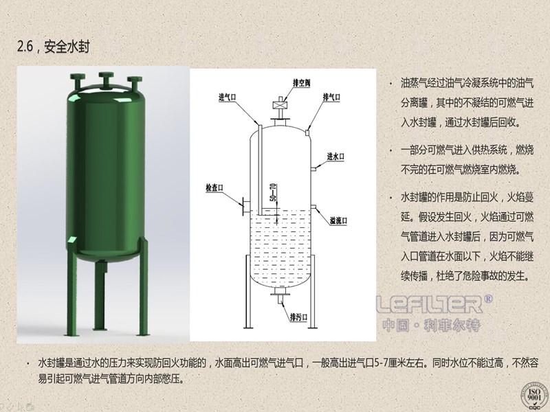 但是利菲爾特推出的煉油設備所采用的廢氣回收裝置,都會具有兩道安全裝置。第一道安全裝置為安全水封,可以有效地防止發生回火情況出現。